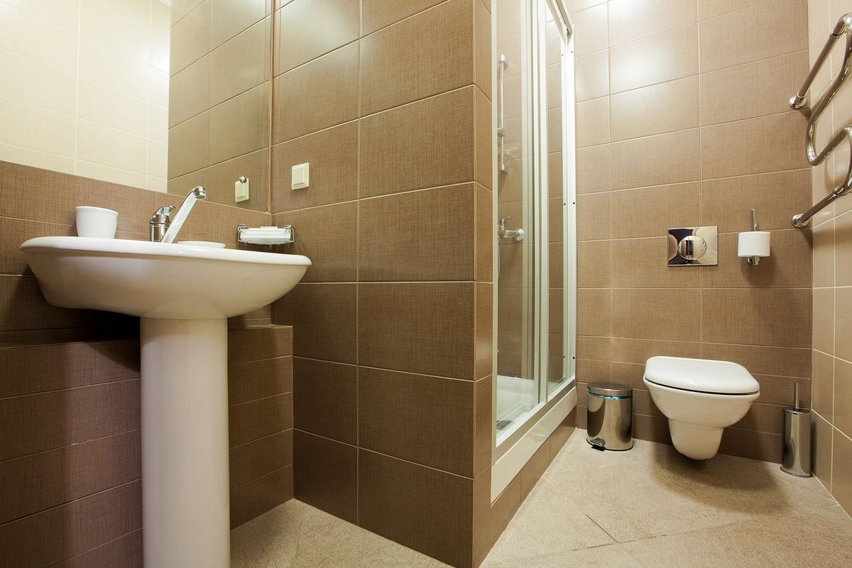 Санузел: душ, раковина, унитаз, фен